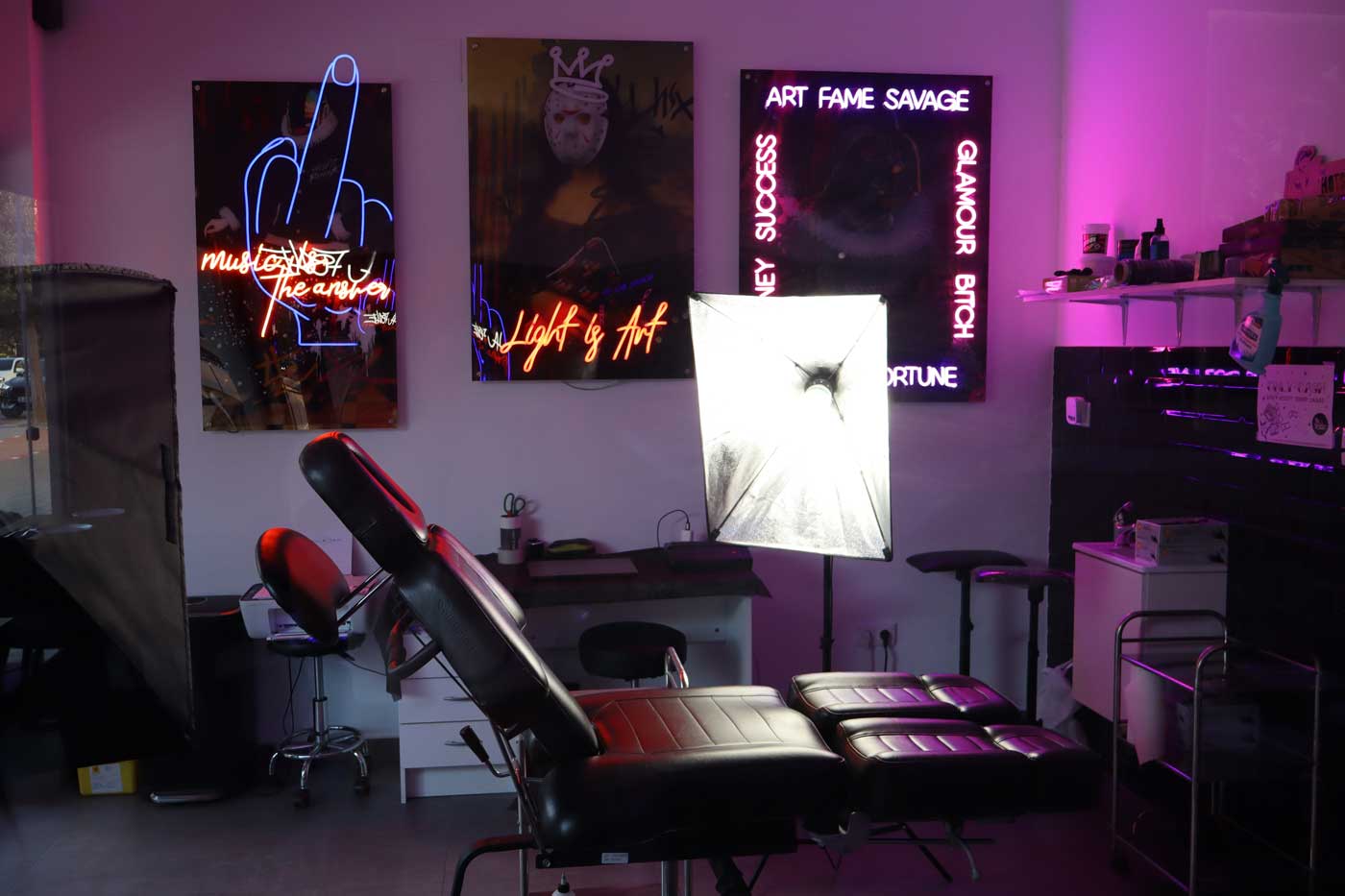 Después de disfrutar de tu menú, te avisaremos para que pases a nuestro estudio de tattoo. Nuestro estudio está totalmente aislado de nuestro restaurante, pero se encuentra en su interior. ¡Cumplimos todas las medidas de seguridad e higiene!